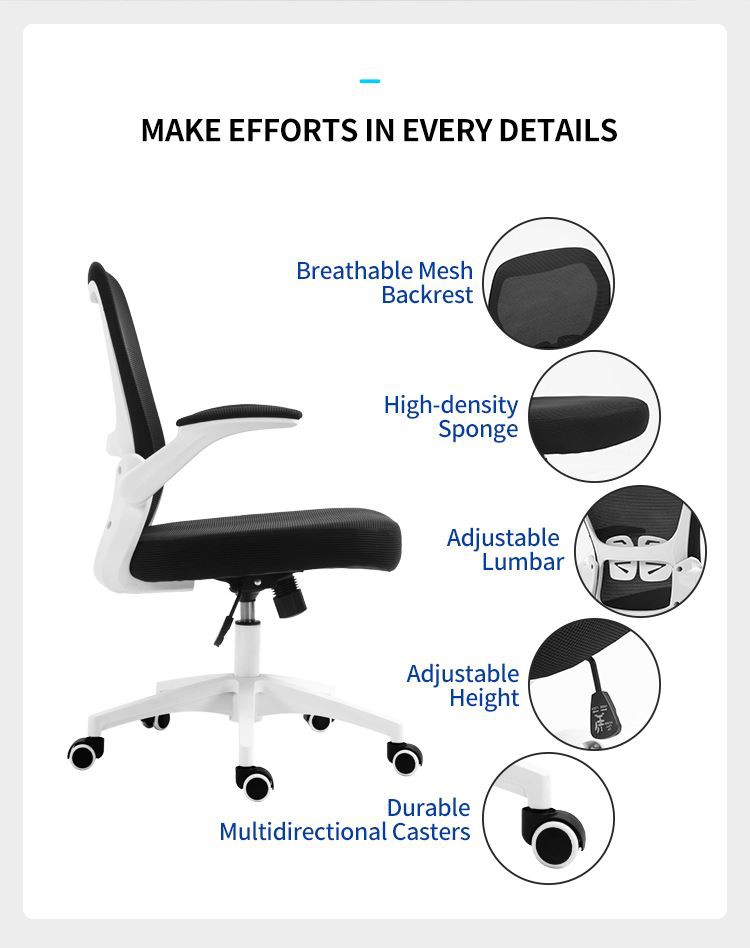 Udobna mrežasta ergonomska stolica ima više podesivih točaka. Visina stolice se može podići ili spustiti preko ručke, što olakšava spajanje stolova različitih visina. Nasloni za ruke na obje strane stolice podržavaju podešavanje prema gore u rasponu od 90-stepena. Kada se zavalite u stolicu i želite da se igrate sa svojim telefonom, ovaj podesivi naslon za ruke pomaže vam da držite ruke na najudobnijoj visini.